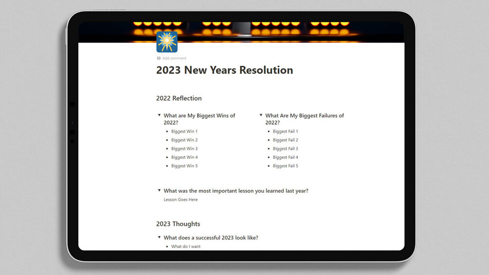 Last year I failed at hitting most of my goals. I decided that needed a change. This template allowed me to reflect on 2022 and plan my goals for 2023.